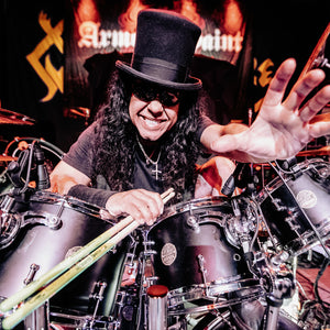 Gonzo uses both our 2B | Acorn Tip | 16.5" | Lacquer and Venom Grip Immortal Series Drum Sticks which are selected from the finest American White Hickory.