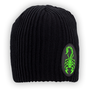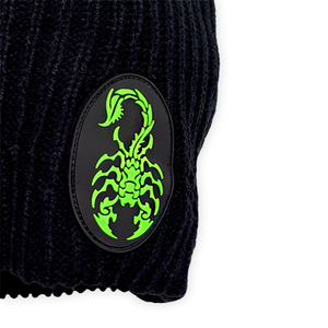The medium knit black beanie is light weight and comfortable including a rubber oval Scorpion patch sewn to the left front quarter. Wear it how you want. This beanie is perfect for load in, rehearsals and those post show camp fires with your fans and friends.