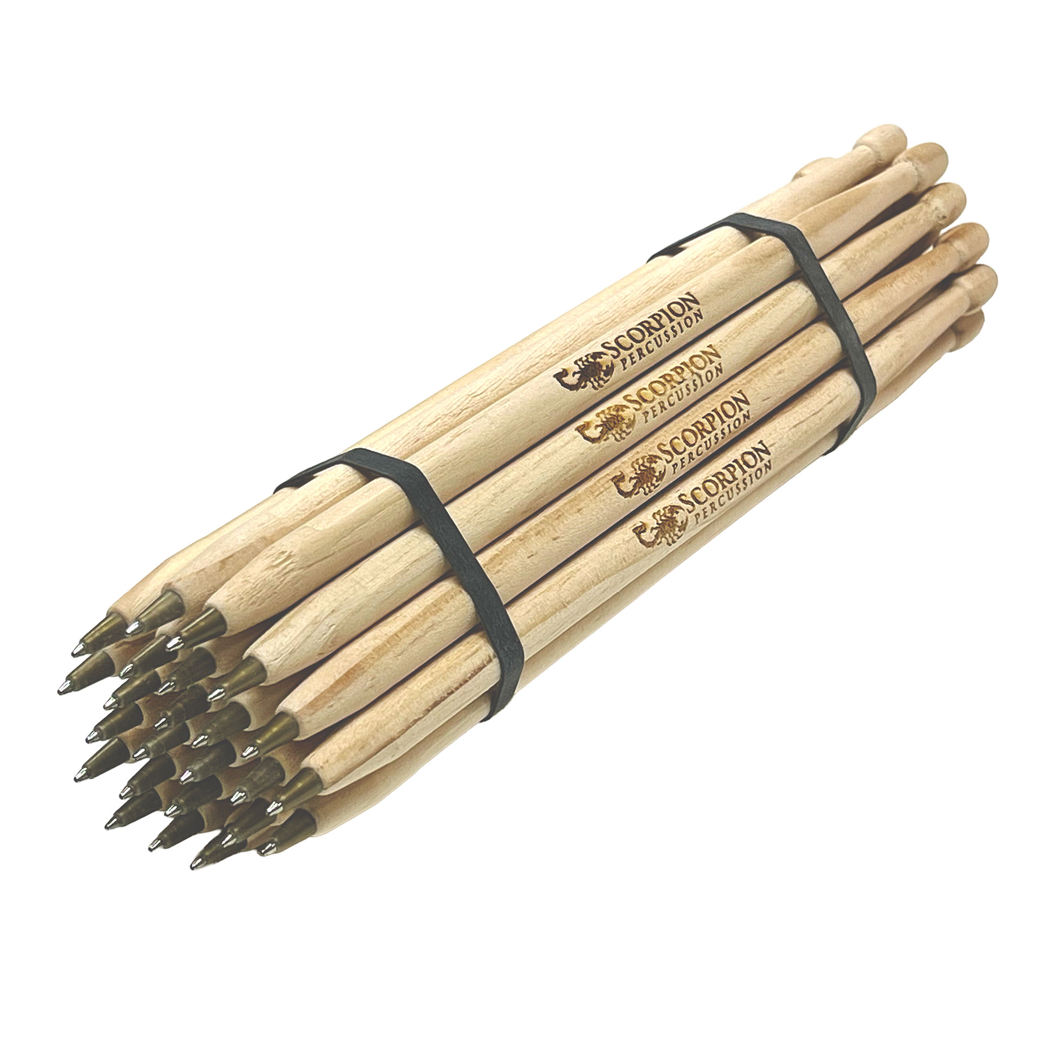 Always keep the beat going with the Scorpion Percussion Ball Point Series. A lightweight pen with a fine ball point tip for easy writing and an oval style tip on the opposite end for desktop blast beats and groove. Customize your own! Give them as gifts to your fans, sell them at the booth or have them around the house. Bulk pricing available.