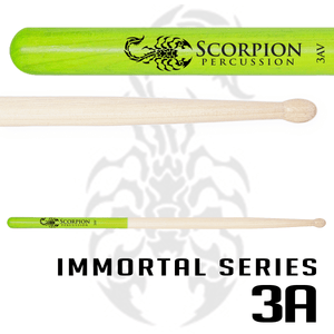 Immortal Series sticks are produced using American Weapon Grade Hickory using modern grinding technology. They have a slightly heavier weight range, medium tapers and smaller sorting tolerances for imperfections such as cross grain and warpage. All Immortal Series drumsticks are sorted rigorously to provide the best and most consistent quality on the market with each order. Every pair of Immortal Series drumsticks are weight and tone sorted to the highest standard.