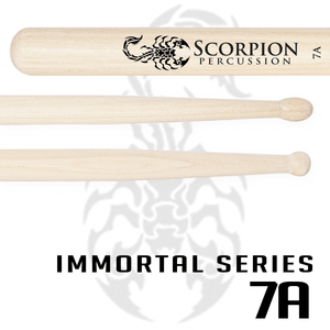 Immortal Series sticks are produced using American Weapon Grade Hickory using modern grinding technology. They have a slightly heavier weight range, medium tapers and smaller sorting tolerances for imperfections such as cross grain and warpage. All Immortal Series drumsticks are sorted rigorously to provide the best and most consistent quality on the market with each order. Every pair of Immortal Series drumsticks are weight and tone sorted to the highest standard.