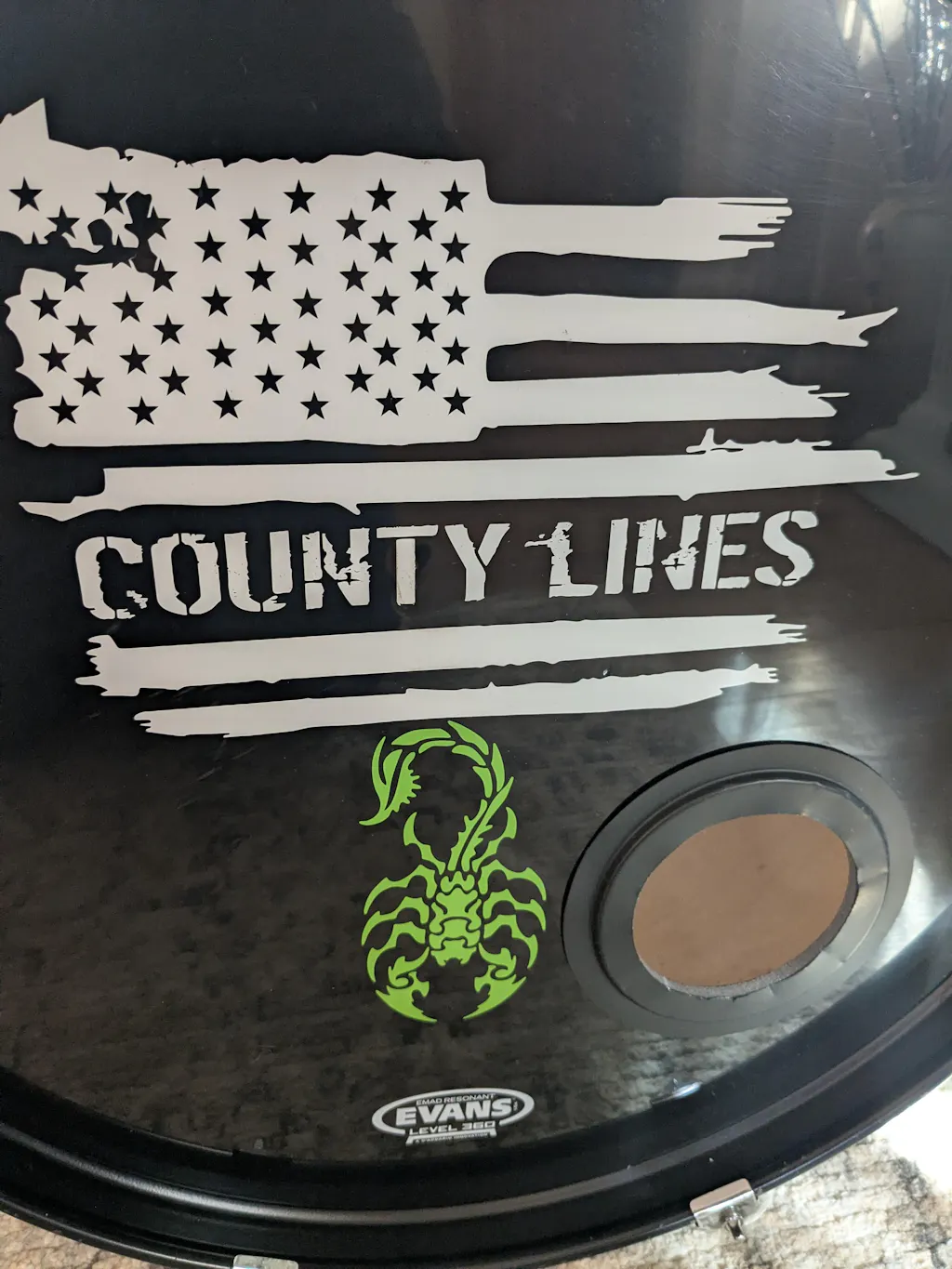A high quality, U/V coated, easy to apply 6 inch vinyl Scorpion Percussion decal, perfect for vehicle windows, bass drum heads, cases, and more.
